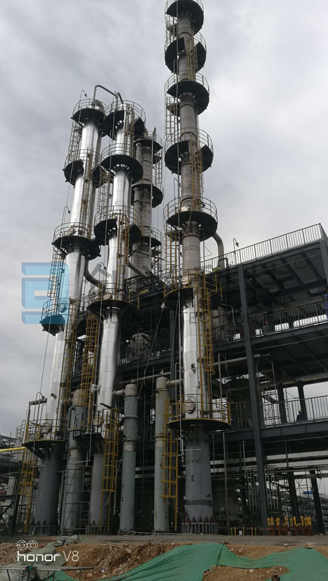 2018年唐山某公司與我公司簽訂年產(chǎn)1萬噸/年1,6-2二醇生產(chǎn)工藝包合同,并由我公司負(fù)責(zé)工藝包在內(nèi)的所有主體設(shè)備的設(shè)計(jì)及制造工作。本套精餾系統(tǒng)是國內(nèi)第一套對雜醇進(jìn)行精餾提質(zhì)裝置,屬于新型工藝路線創(chuàng)新項(xiàng)目。上游反應(yīng)階段生成的的副產(chǎn)物多且物性復(fù)雜,產(chǎn)品精餾提純難度大。本系統(tǒng)產(chǎn)品精餾提純的前期實(shí)驗(yàn)、數(shù)據(jù)收集及工藝流程路線設(shè)定及優(yōu)化均為我公司與中溶科技共同完成,并由我公司根據(jù)實(shí)驗(yàn)結(jié)果進(jìn)行軟件模擬仿真計(jì)算及數(shù)據(jù)偏離修正,確定最終工藝系統(tǒng)方案。