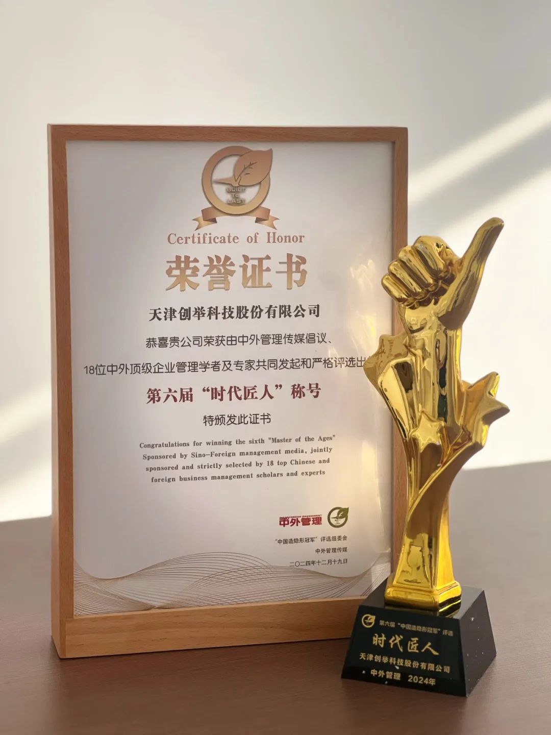 經(jīng)過18位國內(nèi)外頂級企業(yè)實戰(zhàn)派專家、著名商學院院長、投資機構(gòu)、媒體等多方嚴謹細致評定,天津市創(chuàng)舉科技股份有限公司榮獲“時代匠人”企業(yè)稱號。