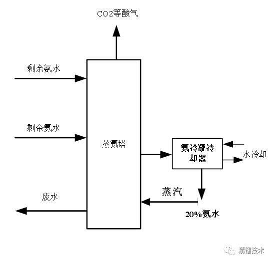 剩余氨水預(yù)先經(jīng)過(guò)陶瓷過(guò)濾器過(guò)濾處理。進(jìn)塔前分成兩股,其中一股從蒸氨塔上部的脫酸段進(jìn)入另一股經(jīng)進(jìn)料預(yù)熱器預(yù)熱后進(jìn)入蒸氨塔蒸餾脫氨段的上部。